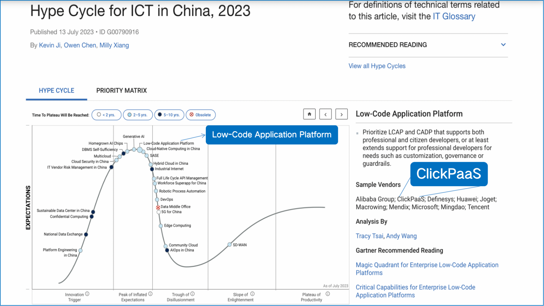 Gartner《2023中国ICT技术成熟度曲线》报告发布,pg电子站入选低代码平台代表厂商
